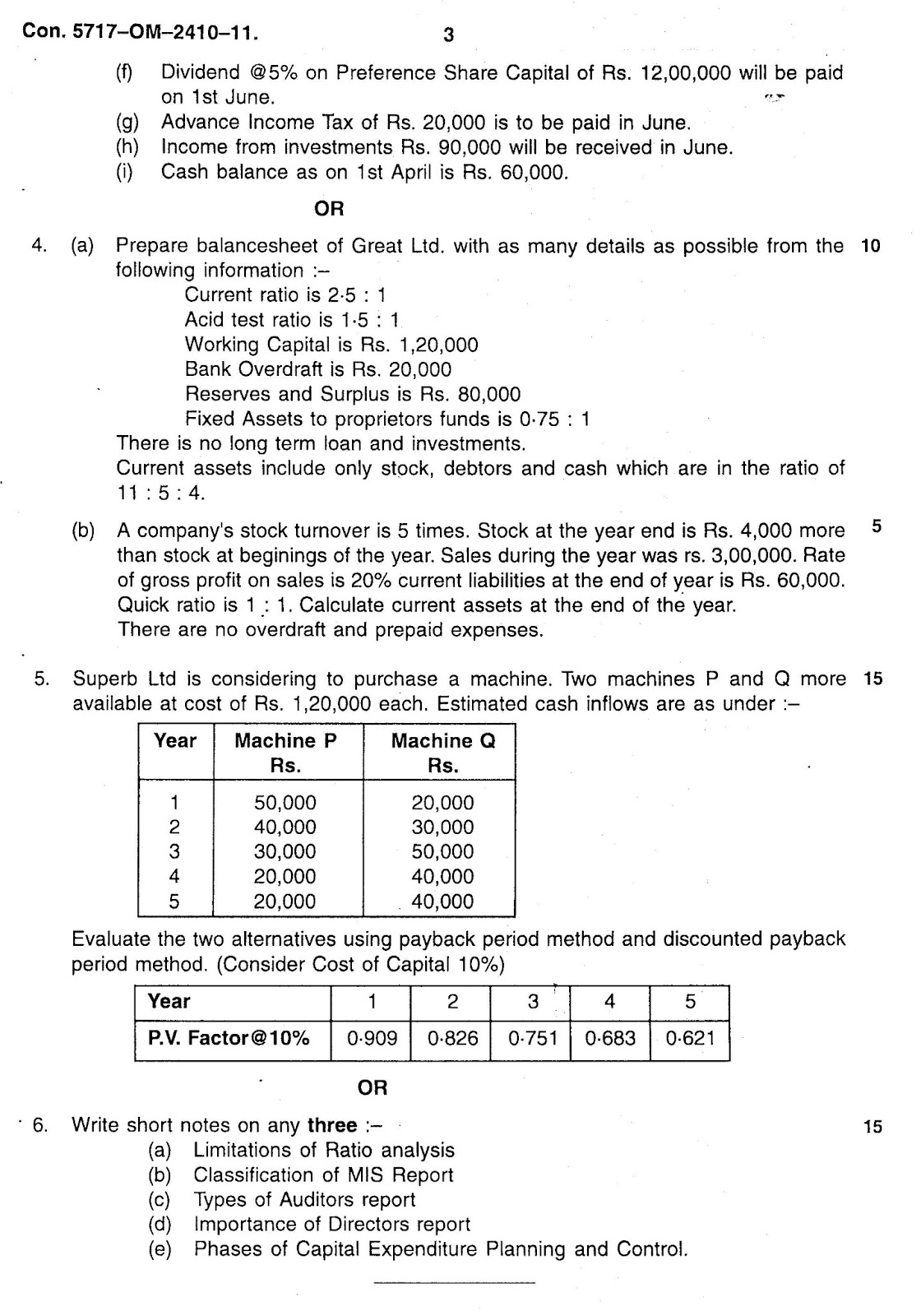 MANAGEMENT ACCOUNTING PAPER - II (BAF)